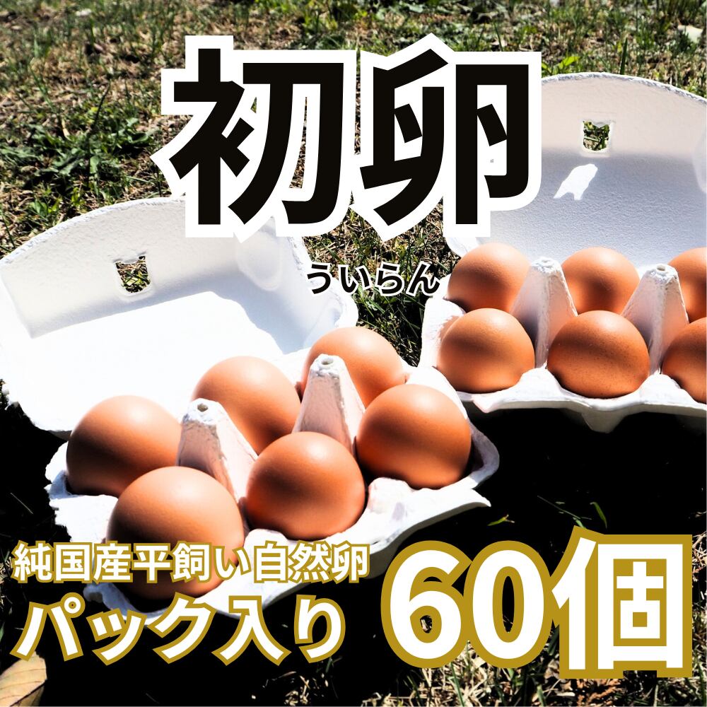内容量: 純国産平飼い自然卵(有精卵) 合計60個(6個入りパック×10パック)