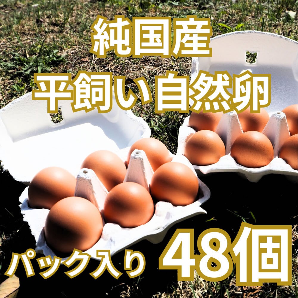 【パック入り|48個】完全自家配合!とれたて純国産平飼い自然卵(有精卵) 全て国産・添加物不使用。大自然の恵みをそのまま提供
