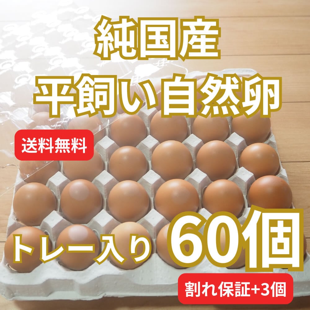 【トレー入り|送料無料!合計63個(60個+割れ保障3個)】完全自家配合!とれたて純国産平飼い自然卵(有精卵) 全て国産・添加物不使用。大自然の恵みをそのまま提供